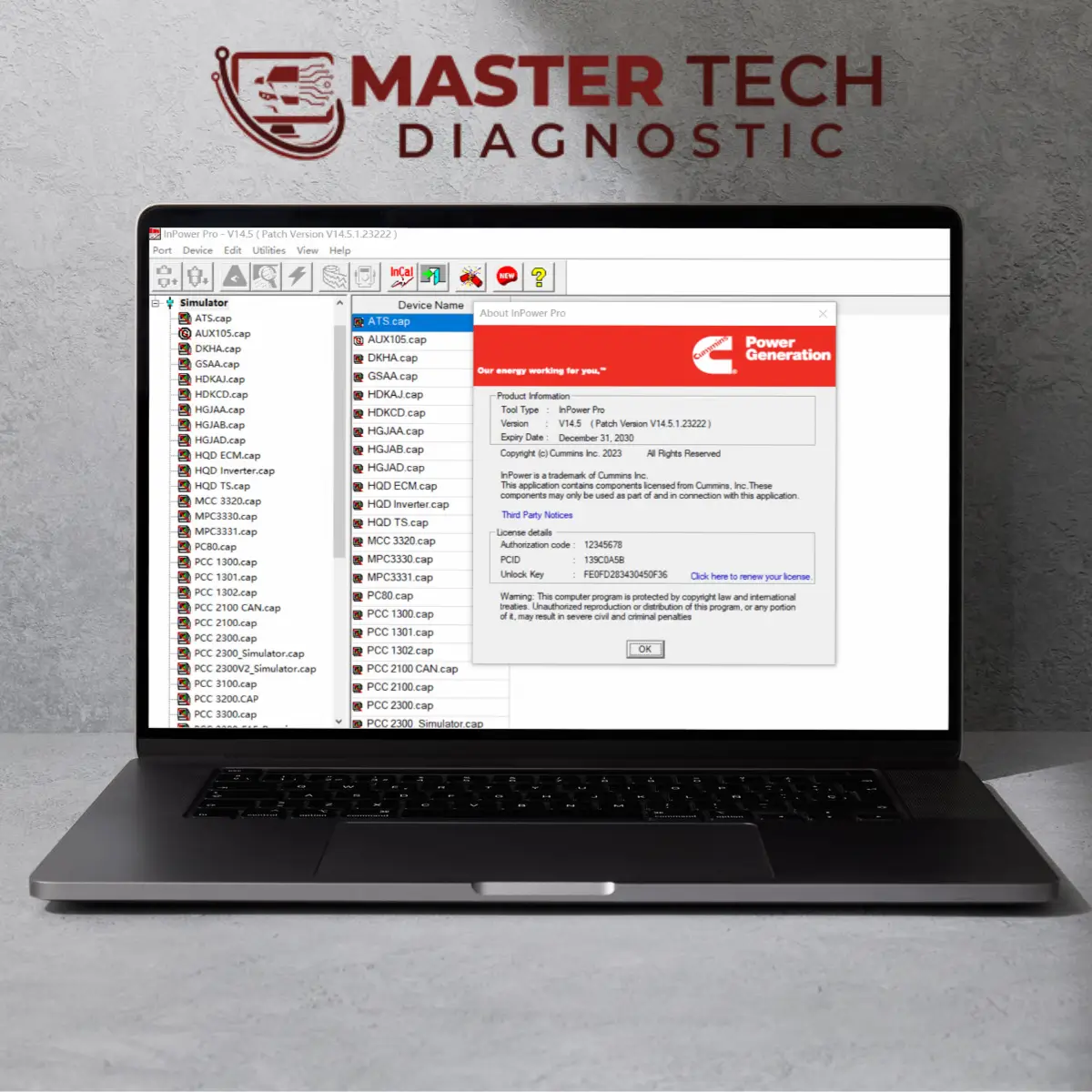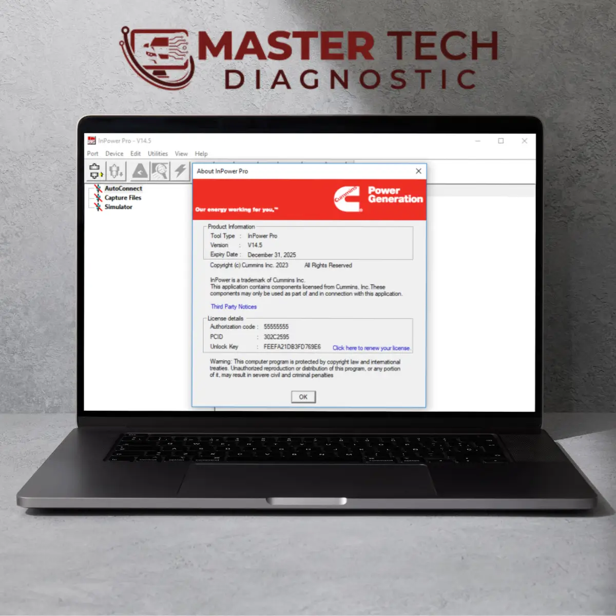 Cummins InPower, Cummins motorları ve jeneratör setleri için özel olarak tasarlanmış bir arıza tespit ve servis yazılımıdır. Hata kodlarını okumanın yanı sıra, canlı veri izleme, parametre ayarı ve enjektör kodlama gibi ileri düzey işlemlerle fabrika seviyesinde teşhis imkanı sunar.