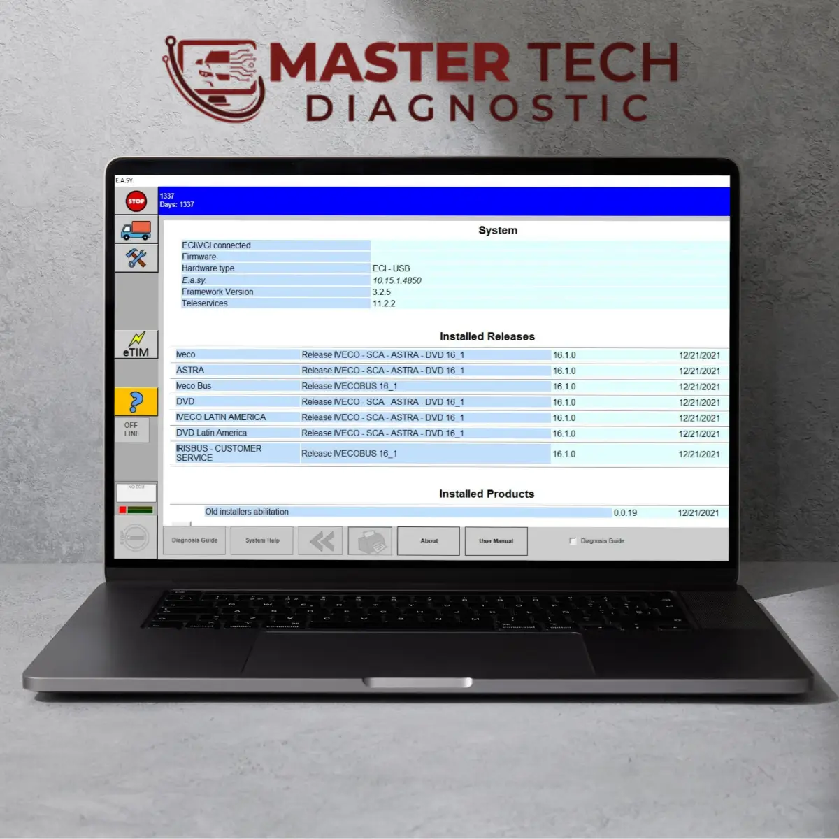 **IVECO Eltrac Easy**, özellikle sahada hızlı arıza tespiti yapmak üzere tasarlanmış, kullanımı kolay bir yazılımdır. Gelişmiş donanımı ve yazılımıyla aracın tüm elektronik kontrol ünitelerine (ECU) bağlanarak motor, şanzıman, fren sistemi ve diğer tüm modüllerin durumunu anlık olarak analiz eder. Hata kodlarını okuma, canlı veri akışını izleme ve temel modül programlaması gibi işlemleri gerçekleştirerek, yetkili servis seviyesinde bir teşhis deneyimi sunar. Bu yazılım, karmaşık arıza giderme süreçlerini basitleştirerek, tamircinin doğru kararları daha hızlı almasını sağlar.