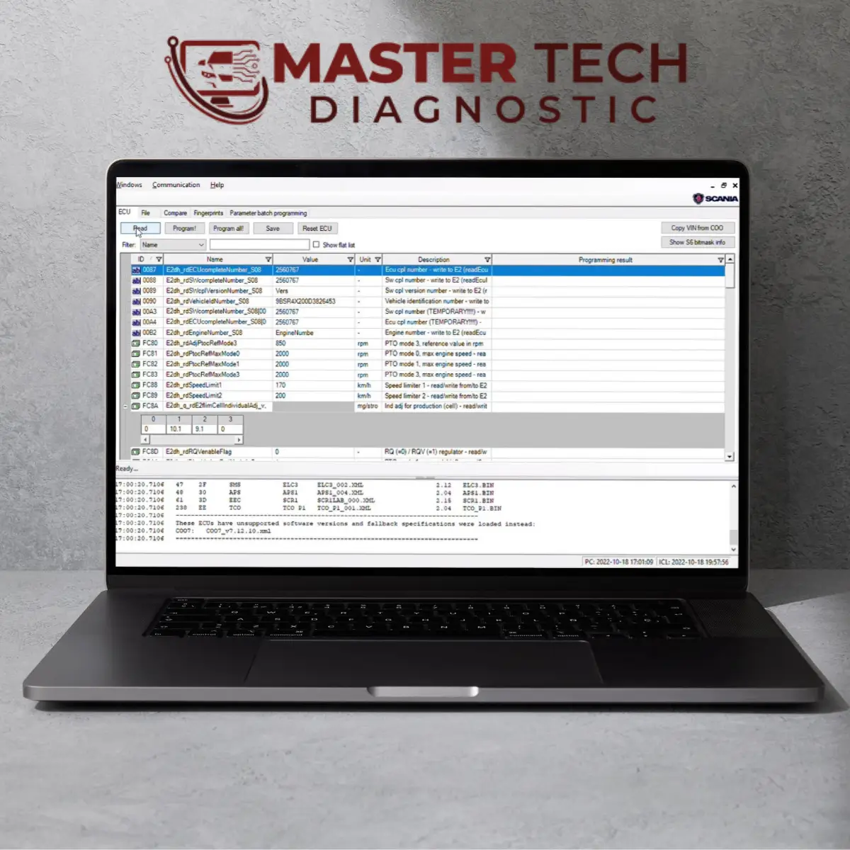 **Scania XCOM**, özellikle motor yönetim sistemi (EMS) ve diğer kontrol üniteleriyle doğrudan iletişim kurabilme yeteneğiyle öne çıkar. Bu, sadece hata kodlarını okuyup silmekle sınırlı kalmaz; aynı zamanda parametre ayarlarını değiştirme, yeni modülleri araca tanıtma ve hatta bazı özellikleri programlama imkanı sunar. Yazılım, ECU’dan PIN kodlarını okuyabilir ve modifiye edilmiş yazılımların flaşlanması gibi ileri düzey işlemleri gerçekleştirebilir. Bu sayede, araç performansını optimize edebilir veya özel operasyonel ihtiyaçlara göre ayarlamalar yapabilirsiniz.